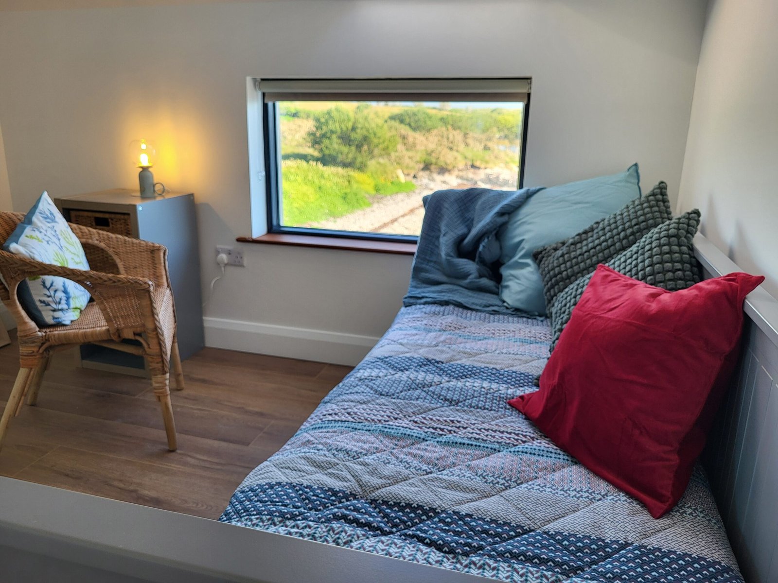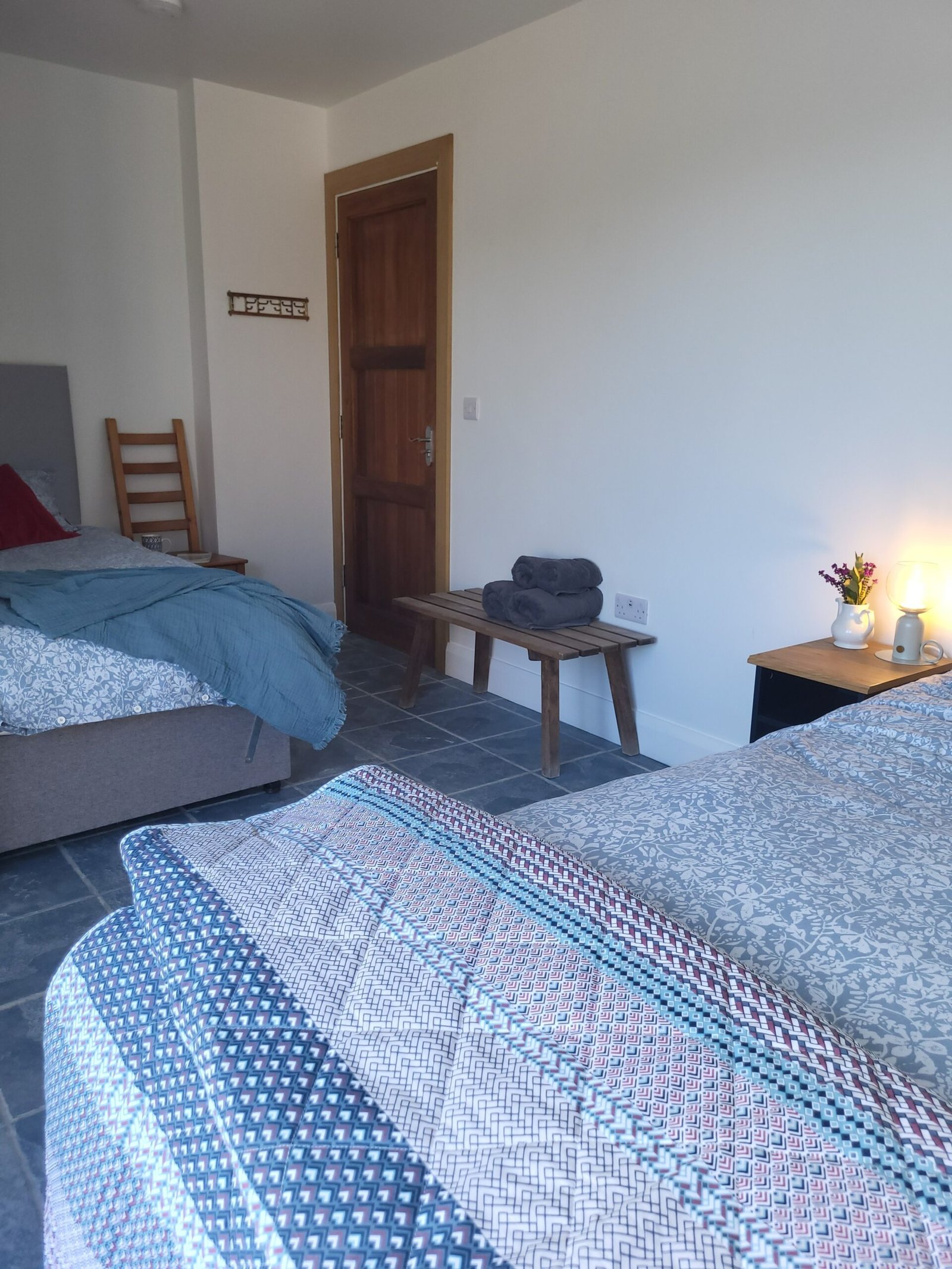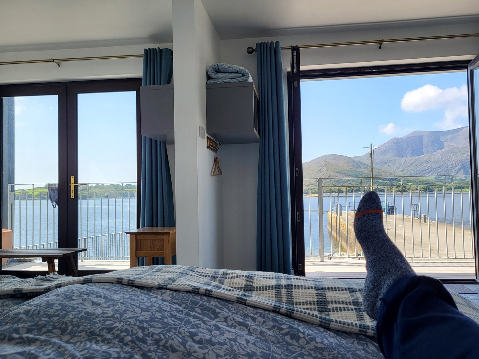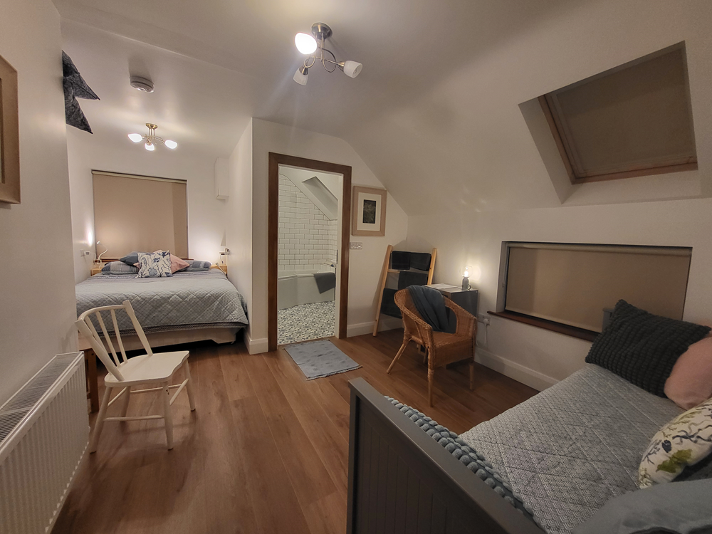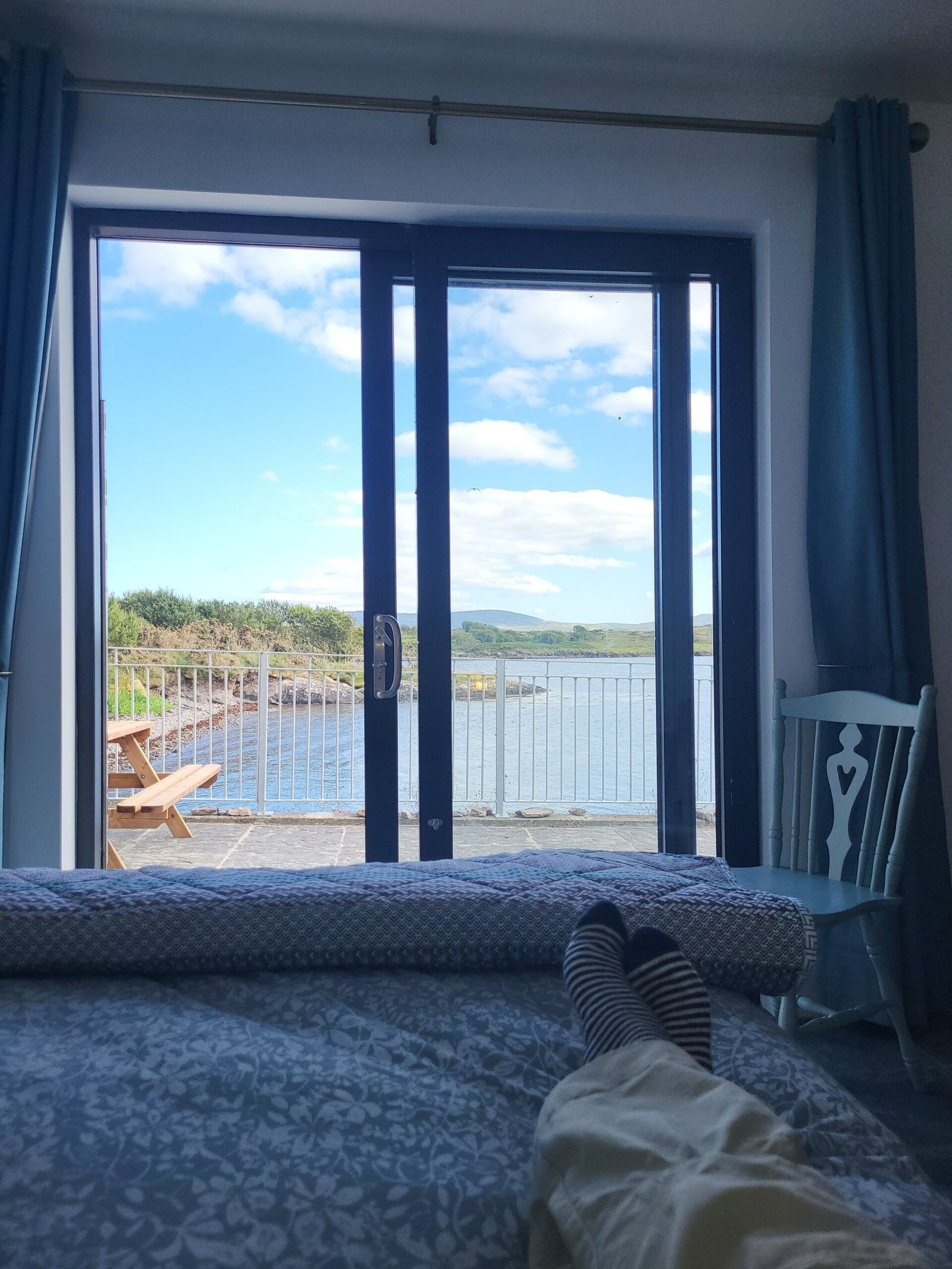 A spacious and light-filled room offering panoramic views of Adrigole Harbour. Perfect for couples or small families seeking a peaceful coastal retreat.
