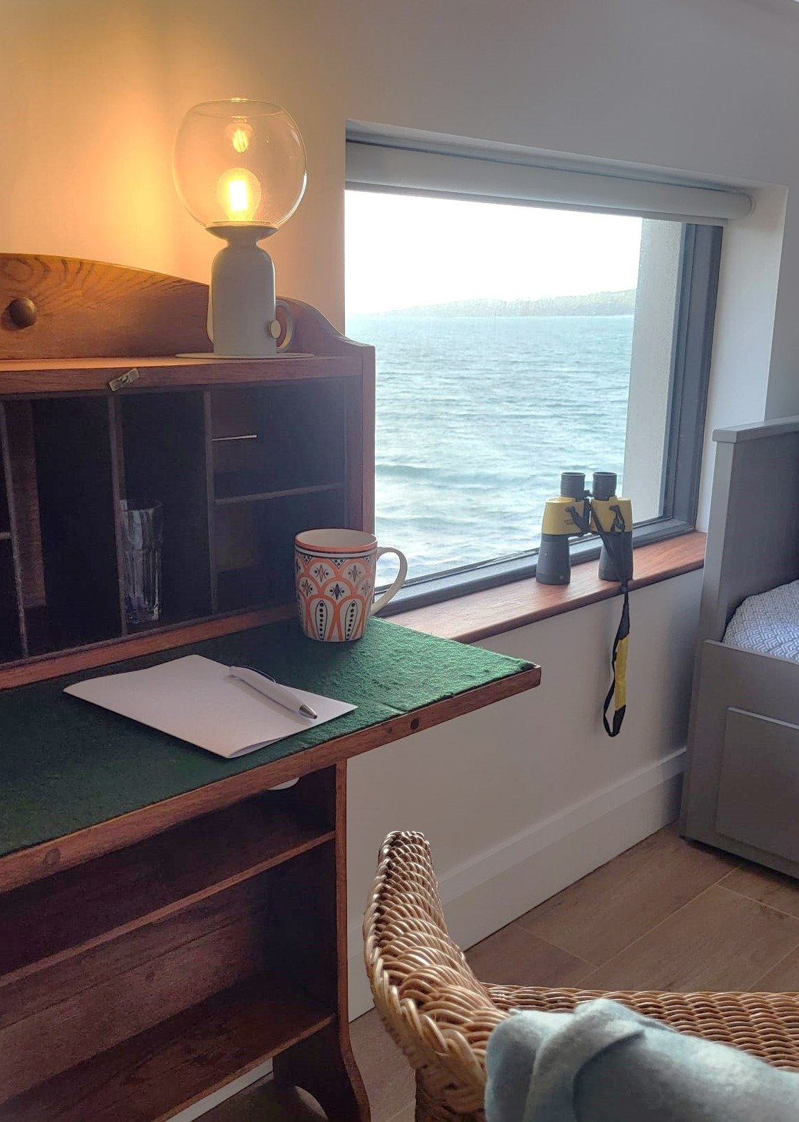Bright, fresh, and elegantly simple — the Pointamore Room overlooks the rugged West Cork coastline. Ideal for friends or travellers exploring the Wild Atlantic Way.